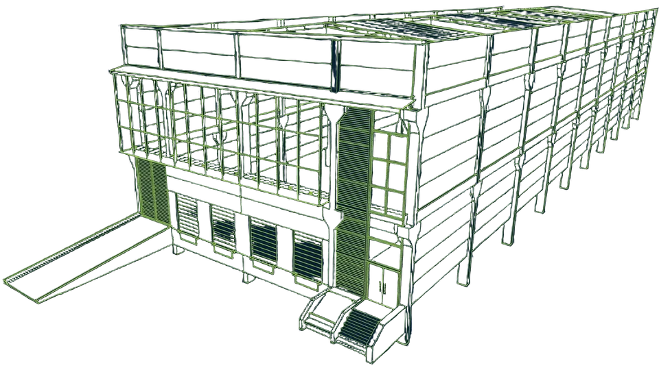 Patios de maniobra, parqueadero privado de 17 ml y vía de 15 m